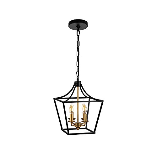 Consumer Reviews JINZO Farmhouse Chandelier 4-Lights Rustic Cage Pendant Light Matt Black and Gold for Foyer Entryway Hallway Dining Room and Kitchen Island.